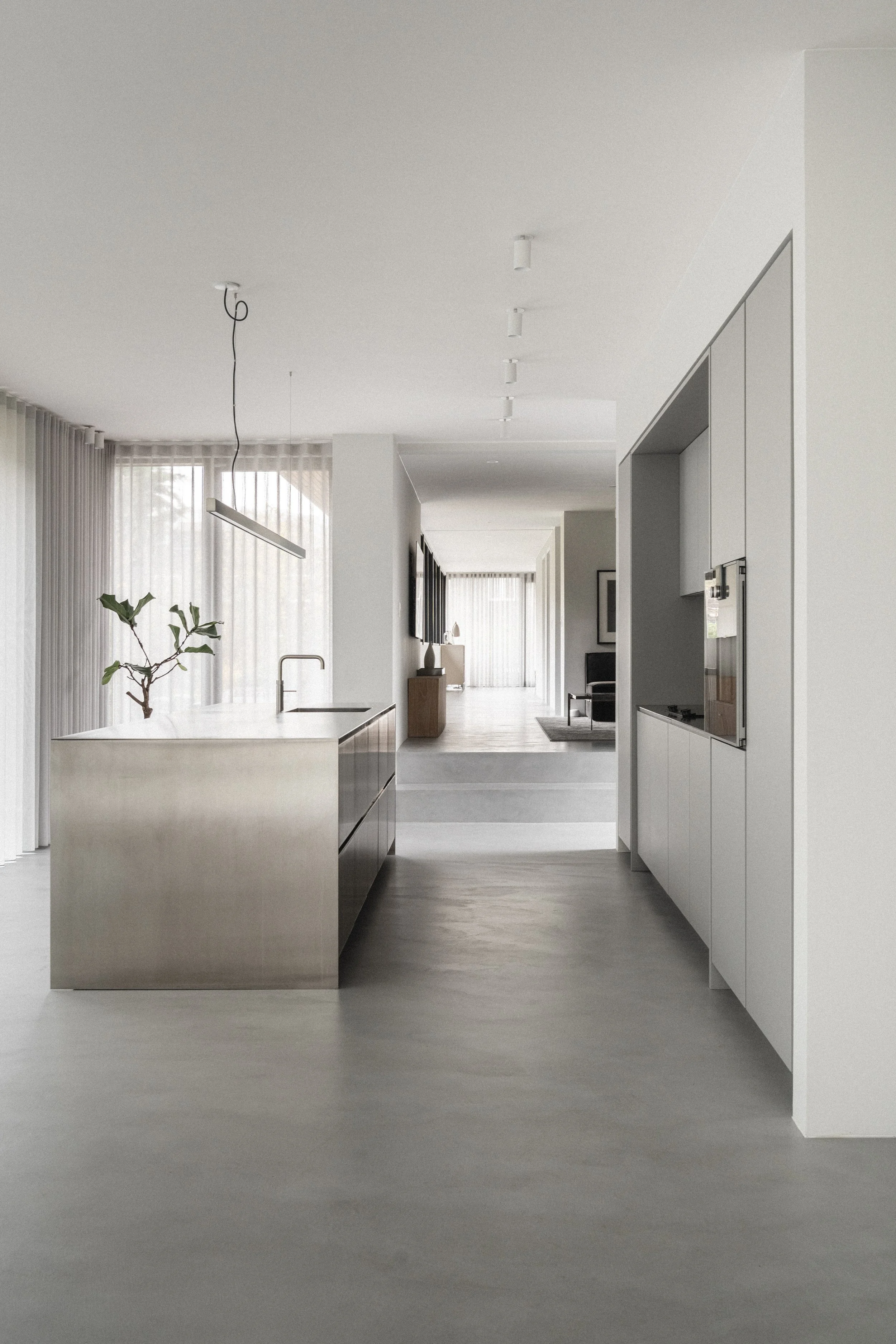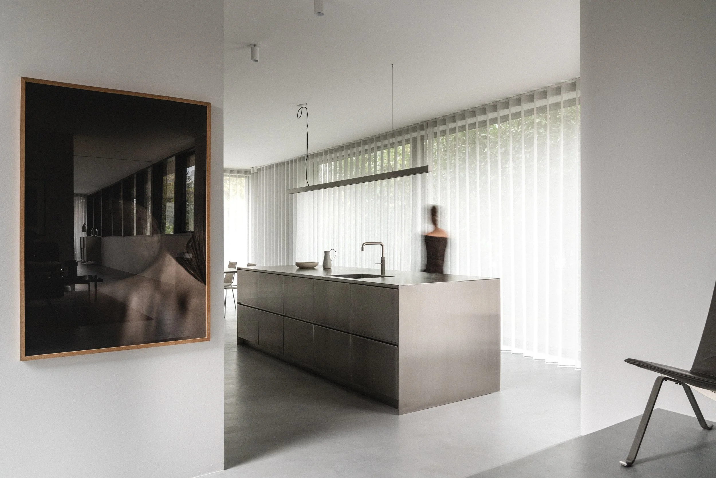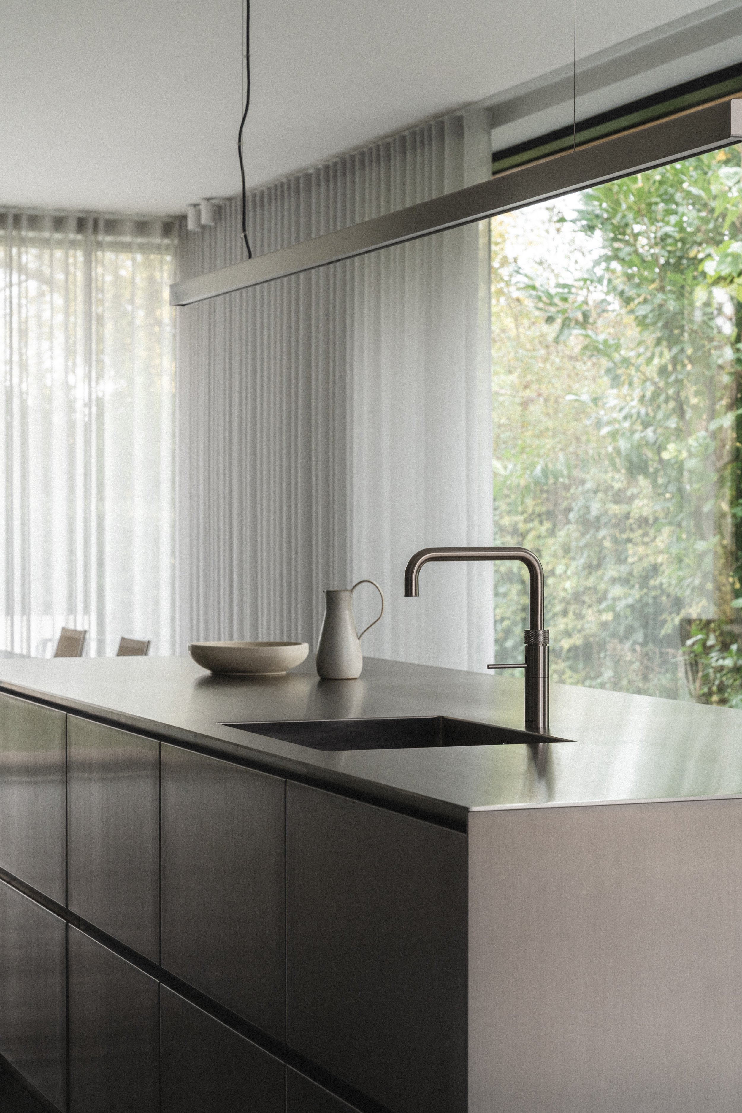 I denne renoverede villa fra 1960’erne forener Boform Copenhagen massivt rustfrit stål, blød grå lak og en præcis balance mellem funktion og form. Resultatet er et roligt, sammenhængende rum, hvor materialerne træder frem med stille selvsikkerhed. Køkkenet afspejler Boforms vedvarende fokus på tidløs kvalitet og en moderne fortolkning af mere end 40 års designarv.