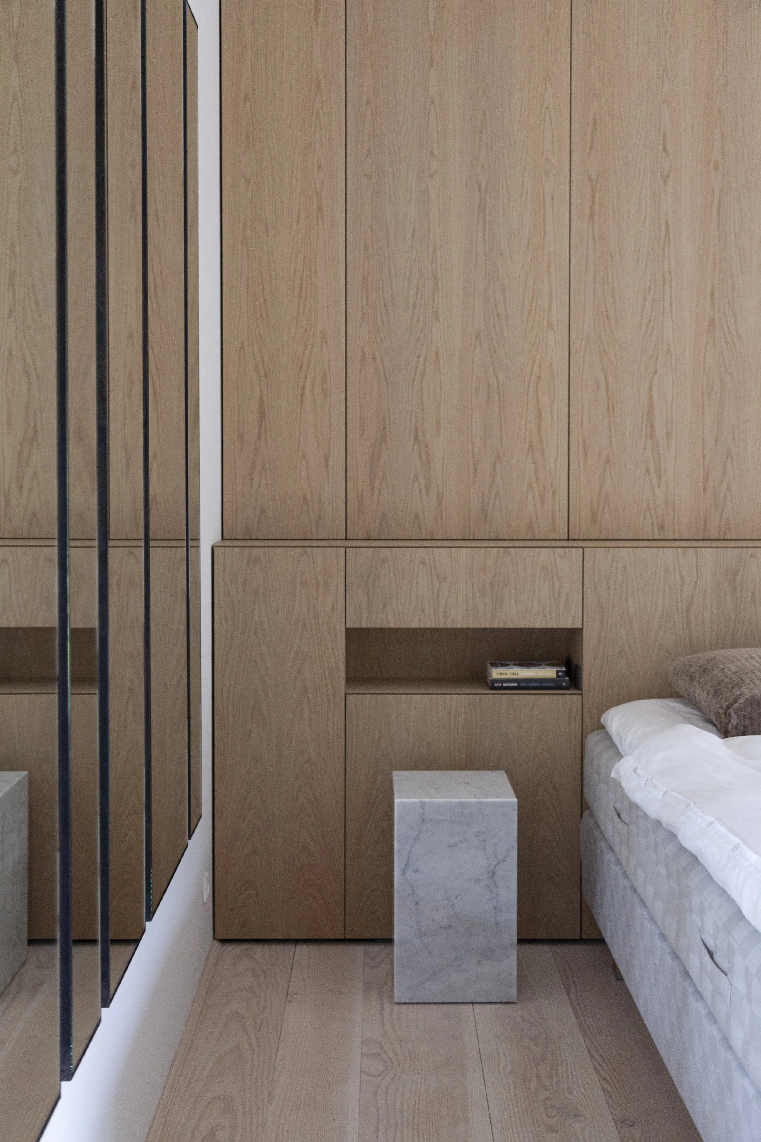 Til denne villa i Vedbæk har vi designet inventar til hele boligen i tæt samarbejde med kunden og deres arkitekt. Bryggers, køkken, sengegavl, badeværelse og skuffemøbler til gangen – alt specialtilpasset husets arkitektur. Inventaret er udført i lys egetræ, og de enkle linjer og naturlige materialer skaber en harmonisk og elegant sammenhæng. Projektet afspejler Boforms tilgang til tidløs nordisk minimalisme, hvor funktion og æstetik smelter sammen i hvert element.